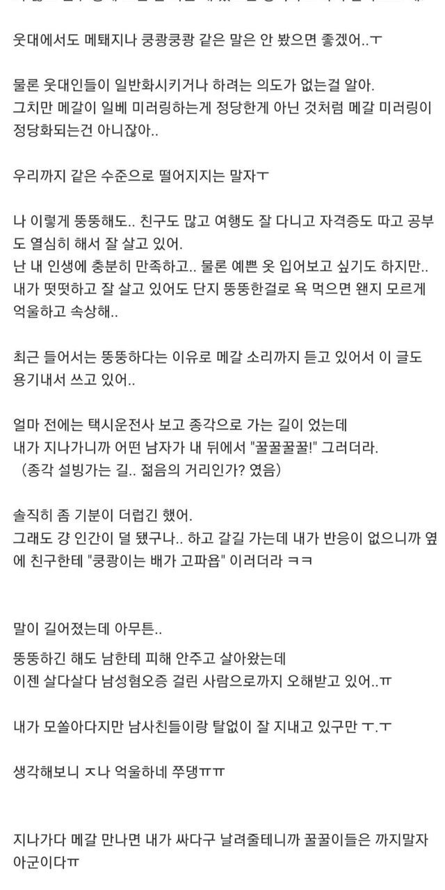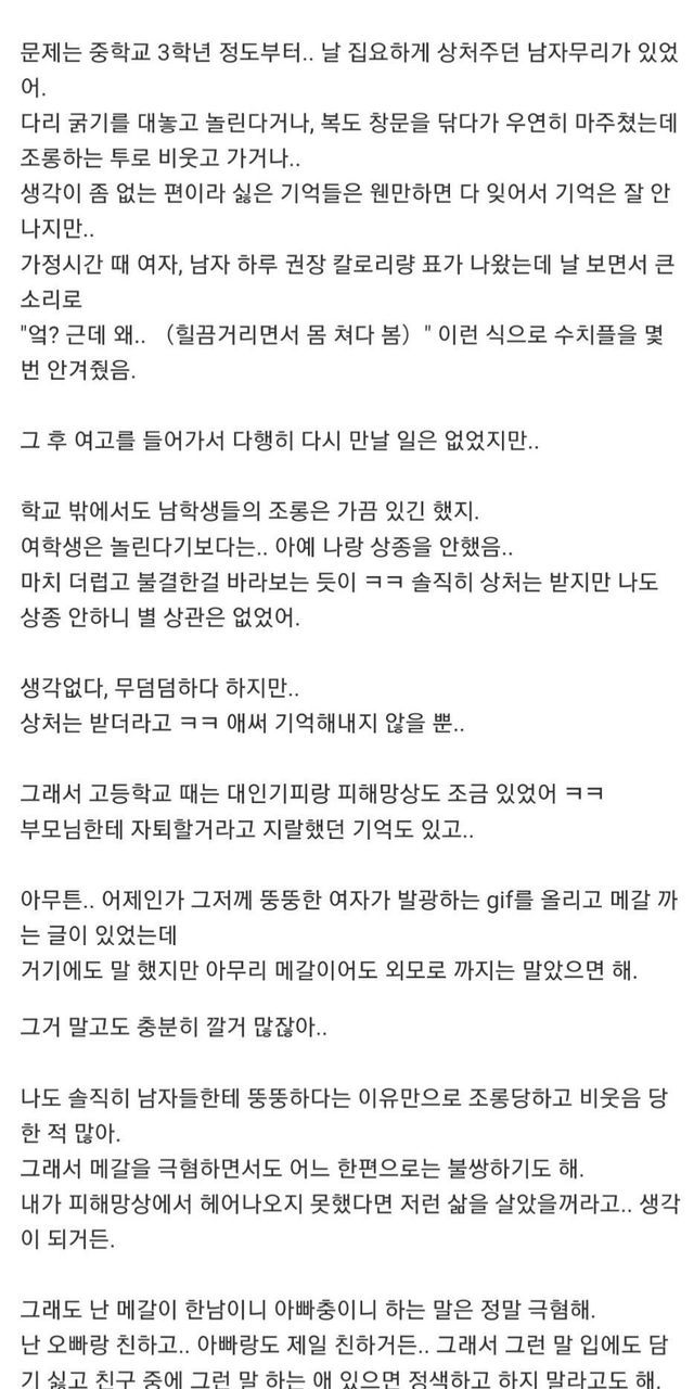 페미를 외모로 조롱하지 말았으면 좋겠음 …