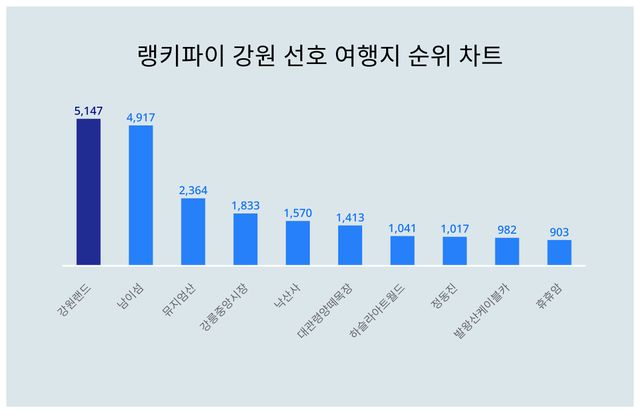 ▲강원 선호 여행지 트렌드 지수 분석 결과 ⓒ랭키파이