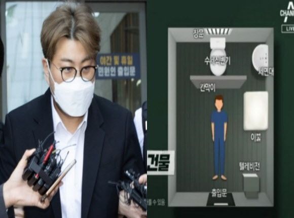 김호중이 수감된 서울구치소 독방 구조도 공개됐다. 약 5.05㎡(약 1.5평)의 크기인 이 방에는 수세식 변기, 세면대, 이불, 텔레비전 등이 있다. 텔레비전은 오후 5시부터 오후 9시까지 4시간 동안 시청할 수 있는 것으로 알려졌다.