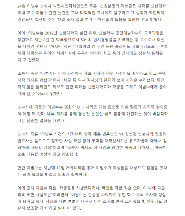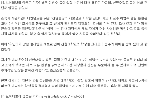 밑에기사는 신한대측 입장 기사인듯