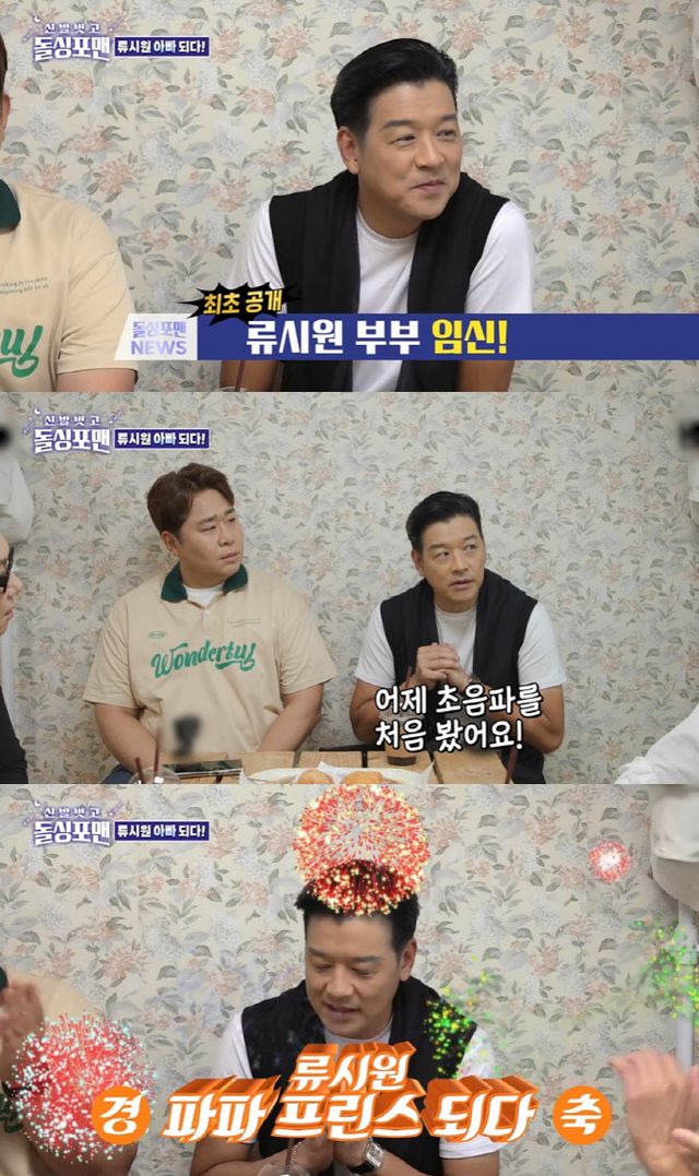 류시원은 “지금 9주 됐다. 어제 초음파를 처음으로 봤다. 머리, 팔, 다리 있고 심장이 뛰더라”고 밝혔다.