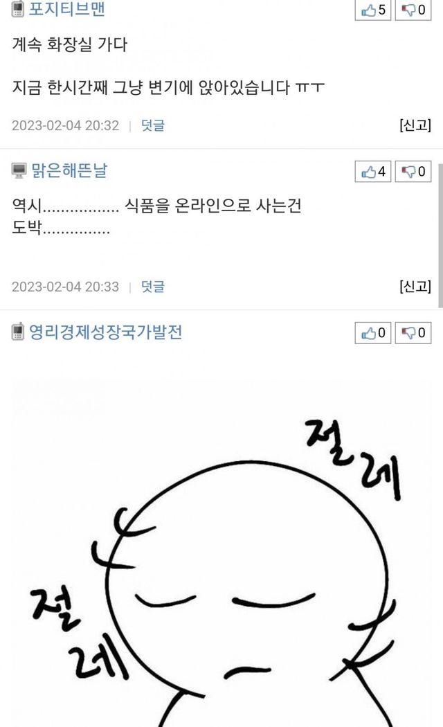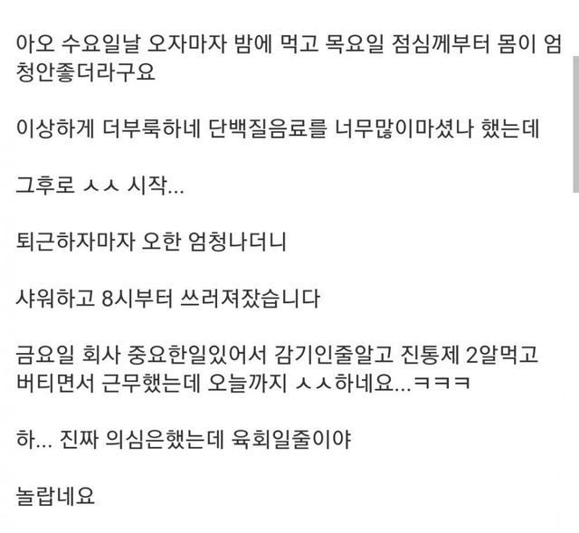 오한,발열,설사증상 수십명 넘게 말 나오는중