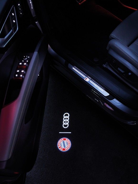아우디 로고와 FC 바이에른의 로고가 삽입된 도어 엔트리 LED 라이트. ⓒ 아우디 코리아