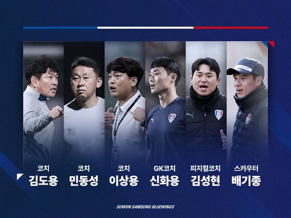 5일 수원은 보도자료를 통해 “변성환 감독을 보좌할 신임 코칭스태프 선임을 완료했다. 새로 선임된 코칭스태프는 김도용, 민동성 코치(이상 대한축구협회 전임 지도자), 이상용 코치(성남FC U15 감독), 배기종 스카우터”라고 발표했다.