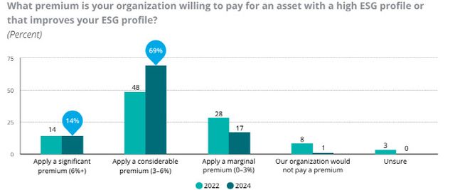 반대로 부정적인 ESG 우려가 있는 기업에 대해서는 67%가 최소 3%의 할인을 원한다고 답했다. 이 역시 직전 조사에서 36%로 나타난 것과 비교해 크게 증가했다.