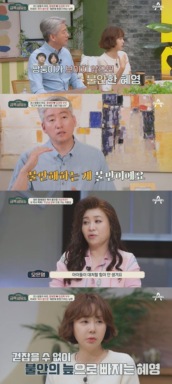 김경록은 초등학교 5학년이 된 아이들이 학교에 다녀오는 것도 불안해하는 아내가 걱정된다며 오은영 박사에게 도움을 요청하고, 남편의 고민을 들은 황혜영은 "아이가 어디에 있는지 모르면 불안하다"라며 이동하는 도중이라 위치가 정확하지 않을 때 불안함을 느낀다고 말한다.