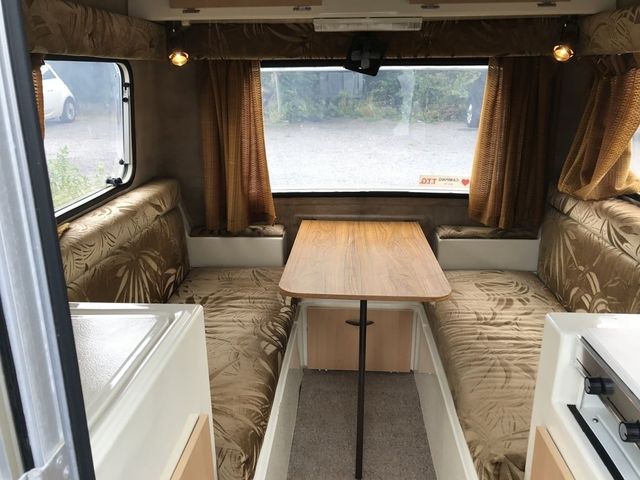 밤에는 다이닝 공간이 침대로 전환됐다. 이는 여행용 트레일러에서 볼 수 있는 일반적인 레이아웃이지만, 이렇게 작은 차량에도 가능하다는 점은 상당히 놀랍다. 카펫 바닥, 덮개가 있는 좌석, 필수 커튼은 집 같은 분위기를 연출한다.