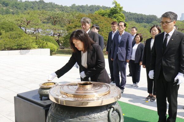 [내외일보] 이수한 기자 = 문경례 서울지방조달청장은 5일 제69회 현충일을 앞두고 국립서울현충원을 찾아 현충탑에 헌화․분향하고 순국선열과 호국영령의 넋을 기리며 참배했다.