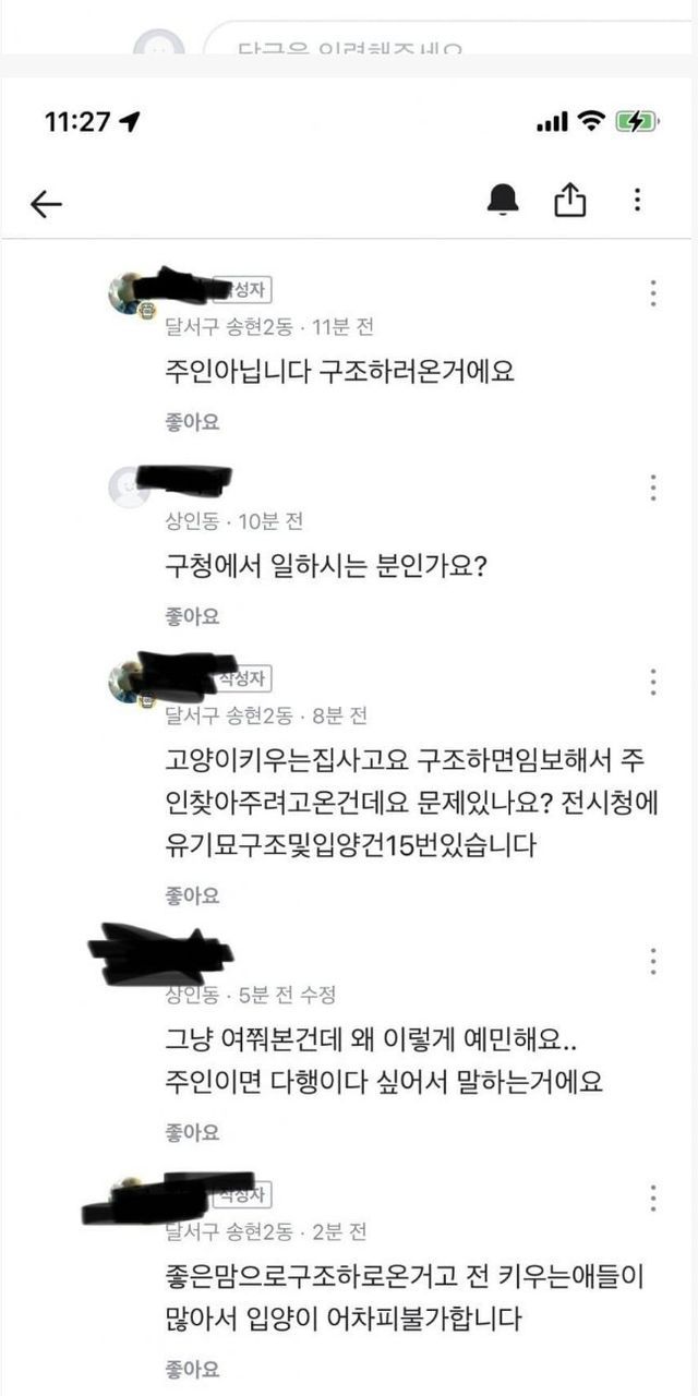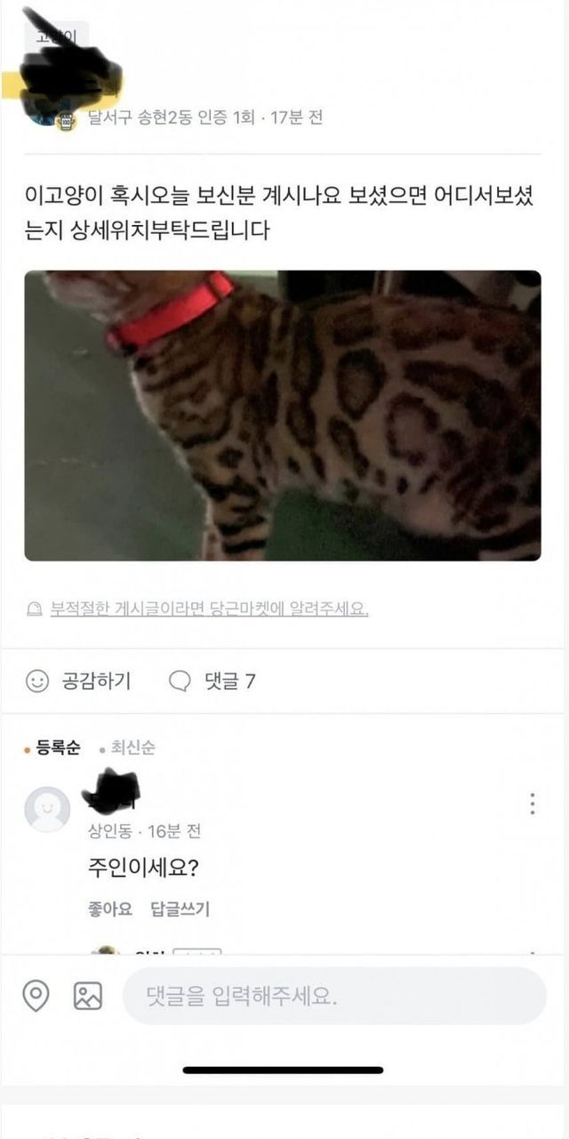 당근에 품종묘 실종 알림 뜨면 그 지역 캣맘들 다 몰려든답니다.