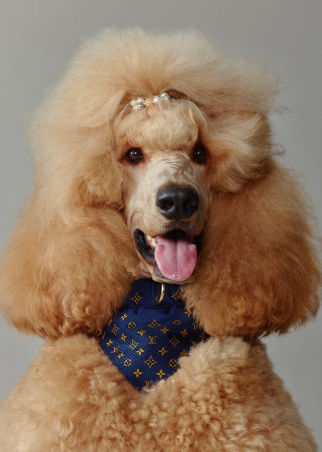 루이 비통은 컬렉션의 일부를 애완견 대회(Dog Show)를 오마주한 챕터로 구성했습니다. 로제트(Rosette) 자수가 더해진 3-피스 수트, 이브닝웨어 스타일의 숄 카라 크롭 재킷이 우아함을 더욱 자극하죠. 애완견의 얼굴로 가득한 하운드투스 모티프의 자카드 블루종은 애완견에 대한 애정을 아낌없이 드러내는 아이템입니다. 또한, 블랙 벨벳 베레모는 애완견 버전의 ‘미니-미’ 아이템으로도 출시될 예정이기에 견주들의 소장 욕구를 끌어올리죠. 이외에도 LVERS 로고 장식이 더해진 리드, 목걸이, 하네스 등 애견 컬렉션도 함께 공개되어 주목을 받았습니다.