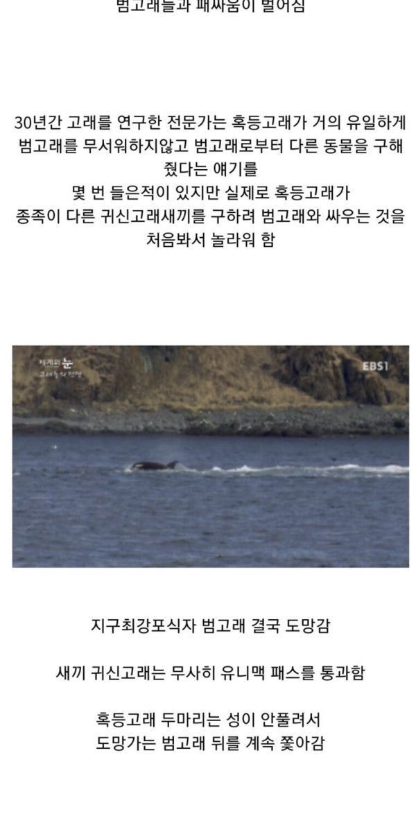 바다에서 범고래 떼를 이길 수 있는 유일한 생명체,,