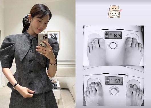 성유리는 4일 자신의 인스타그램 스토리를 통해 체중계 사진을 공개했다. 사진 속 체중계에는 80.9kg과 50.1kg이라는 숫자가 적혀 있어, 성유리가 출산 후 30kg 가까이 감량에 성공했다는 사실을 확인시켜 주었다.