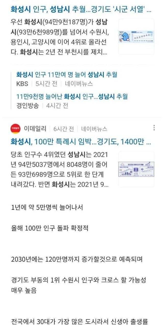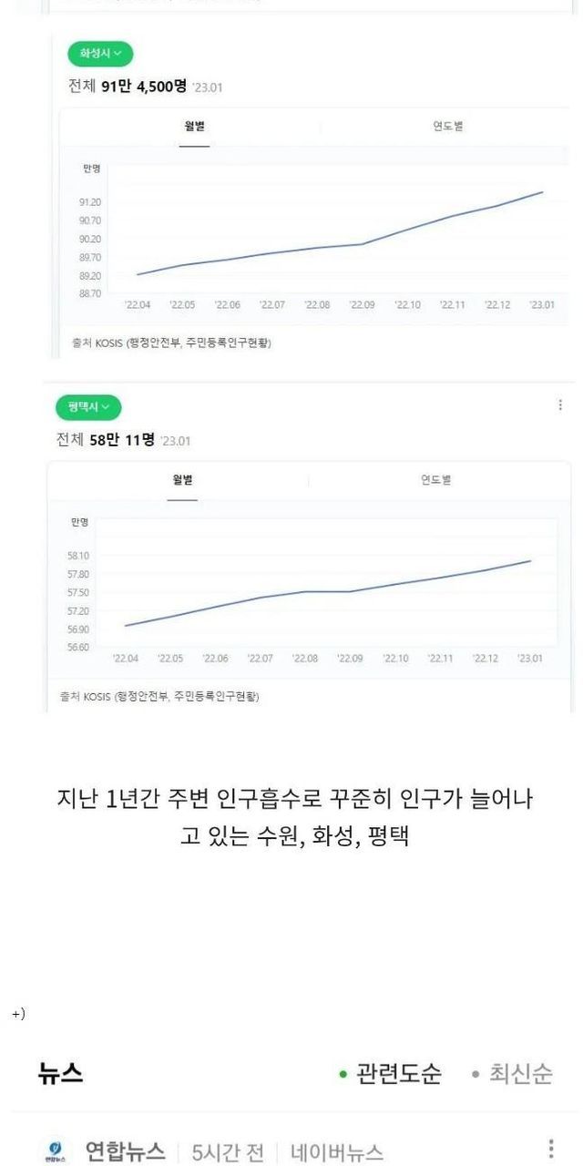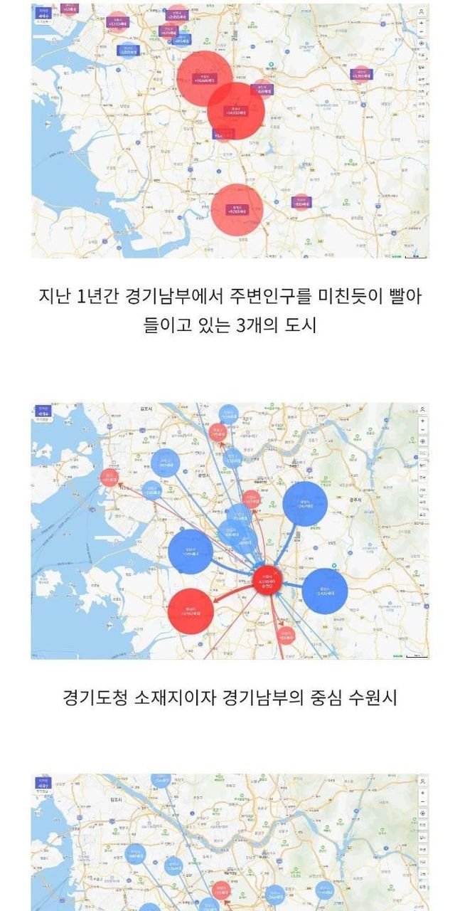 주변 인구 미친듯이 흡수하고 있는 경기도 3개 도시 …