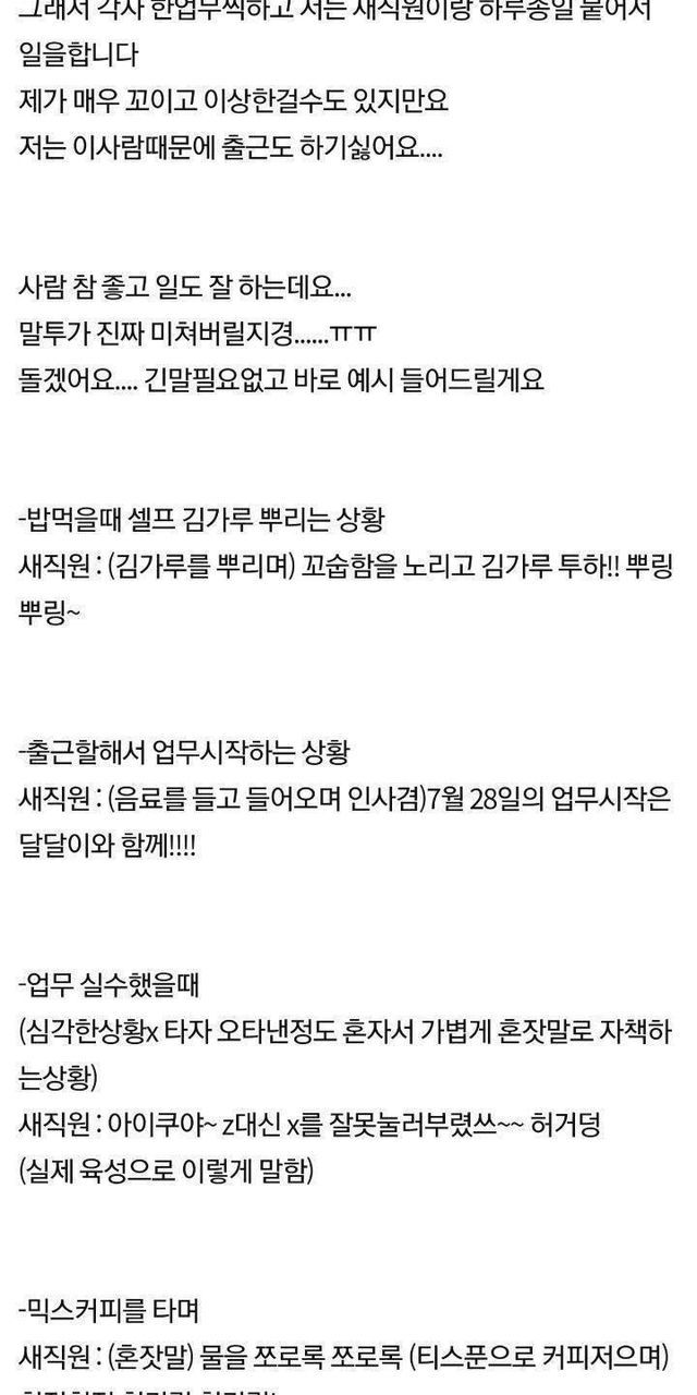 신입 말투때문에 너무 힘들어요… …