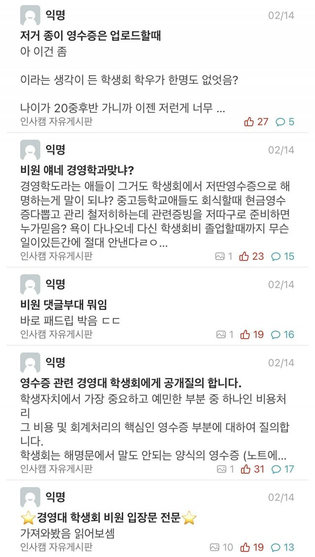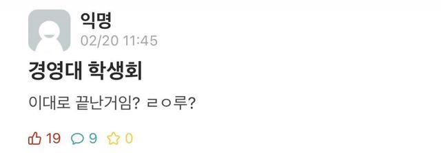 6일이 지난 현재까지도 경영학과 학생회는 아무 해명도 안하고 묵비권 행사하고 있어서 학생들은 더 화내는 중 ㄷㄷ