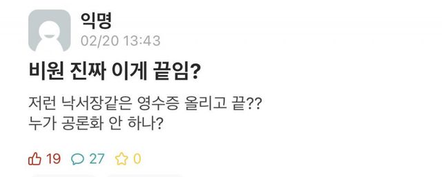 뭐가 됐든 공식 단체에서 이러한 영수증 처리는 말이 안 되는 상황