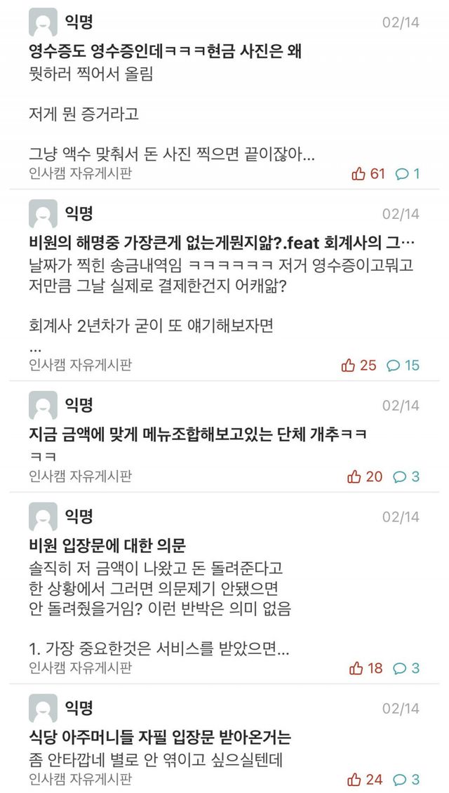 개인적인 의견으로는 솔직히 돈 얼마나 된다고 횡령은 안 했을거라 생각함. 다만 입장문이 너무 부실하고 어이가 없음;; 영수증 저게 최선이었나 라는 의문이 듦