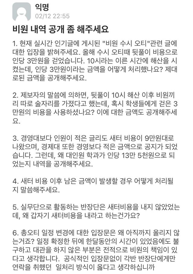 아무튼 성균관대학교 구성원으로서 성균관대학교 경영학과 학생회에 현재 논란이 되고 있는 사건에 대한 납득 가능한 공식 해명을 요구합니다.
