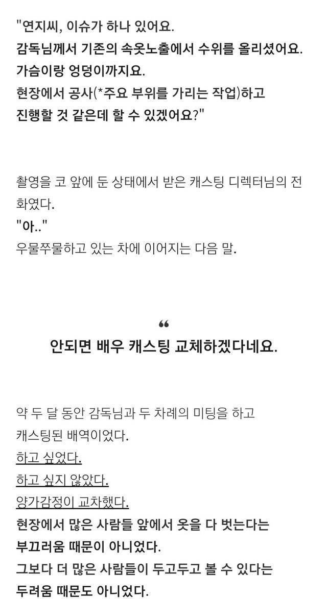 촬영 코 앞에두고 가슴,엉덩이 다 깐다고 바뀜