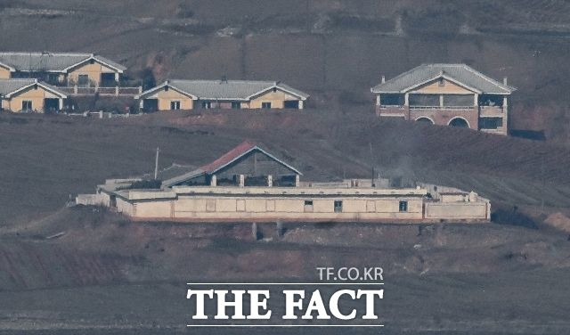 탈북민단체 자유북한운동연합은 6일 이른 새벽 대북전단 20만장을 살포했다. 사진은 경기도 파주시 오두산통일전망대에서 바라 본 황해북도 개풍군 선전마을. /더팩트 DB