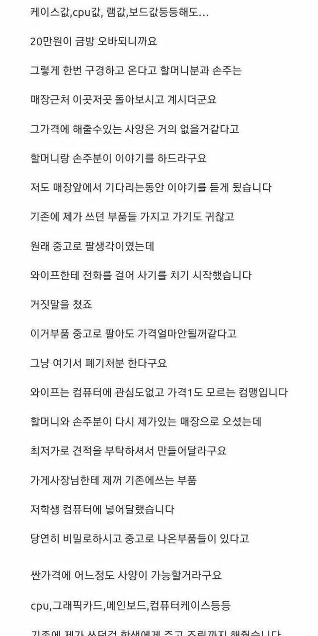 컴퓨터 매장 가서 아내한테 사기친 썰
