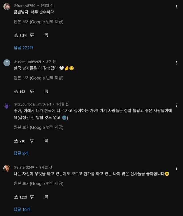 그에 대한 외국인의 댓글들
