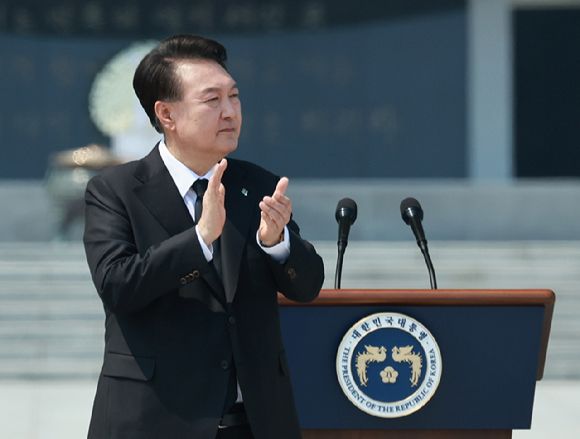추념사에서 윤 대통령은 6·25 전쟁 이후 성장과 번영의 꽃을 피워낸 우리의 지난 70여 년이 세계 어느 나라도 이루지 못한 기적의 역사였음을 조명하면서 위대한 영웅들의 헌신이 그 토대가 됐다고 강조했다.