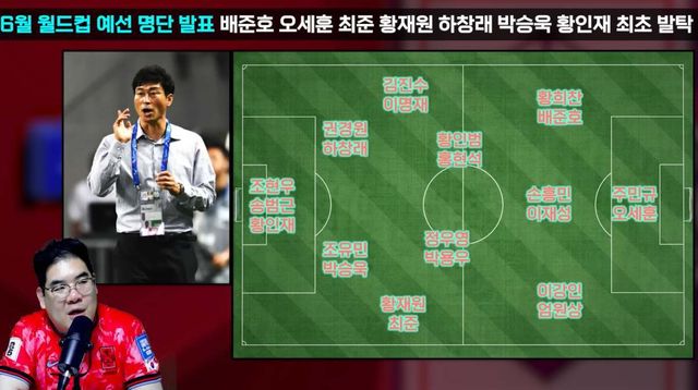 바로 6일 열리는 싱가포르전 베스트 11 선발 라인업에 대한 부분이다. 지난 4일 축구 전문 유튜브 채널에는 '배준호 손흥민 공격 조합?! 싱가포르전 김도훈 체제 역대 가장 새로운 대표팀 실험 (전술 프리뷰)’라는 제목의 영상이 올라왔다. '한준TV HANJUNE TV'는 축구 전문 기자, 해설위원 출신인 한준(본명 한준희 / 현 대한축구협회 부회장 한준희와는 다른 인물)이 운영하는 채널이다.