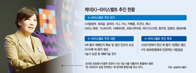 이상준 농식품부 K-라이스벨트추진단장은 "K-라이스벨트를 통해 50~100㏊ 규모의 벼 종자 생산단지 및 인프라를 구축할 것"이라며 "수확된 종자를 현지 농가에 보급하고 향후 정주여건 개선 등 농촌개발 확대도 추진하겠다"고 설명했다.