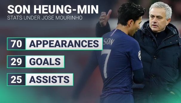 반면 손흥민과의 관계는 좋았다고 소개했다. 매체는 "토트넘 시절 무리뉴는 실망스러웠으나 그는 해리 케인, 손흥민이라는 최고의 두 선수를 끌어냈다"라며 "무리뉴 밑에서 가장 많은 시간을 뛴 선수였던 손흥민은 70경기 동안 29골과 25도움을 기록했다"라고 했다.