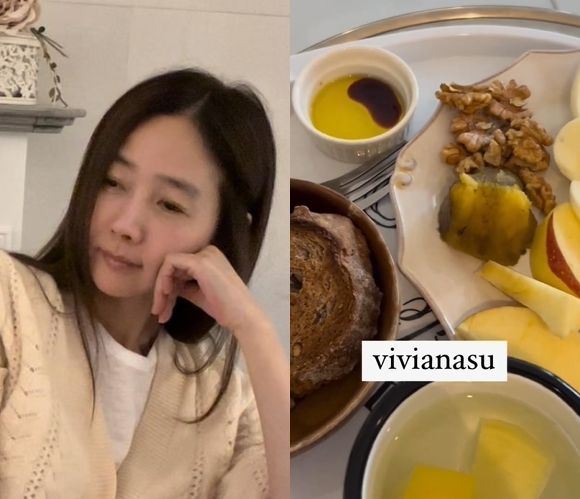 공개된 영상에는 강수지의 아침 식사가 담겼다. 삶은 달걀과 과일, 빵 한 조각과 견과류 등으로 구성된 건강하면서 간소한 아침 식사가 놓여져 있다.