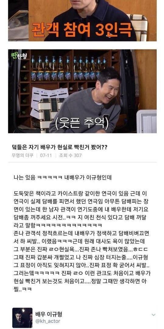관객 때문에 역대급으로 빡쳤던 순간을 얘기하는 배우,,