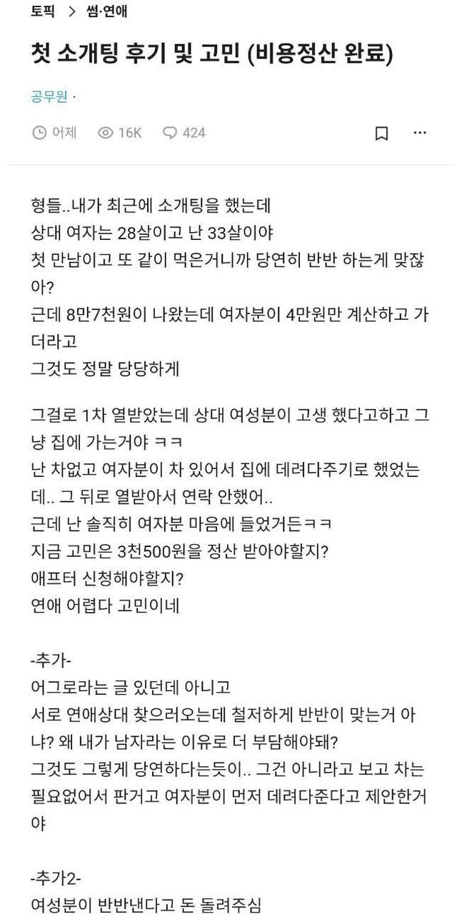 현재 난리 났다는 소개팅 후기글 ㄷㄷ …
