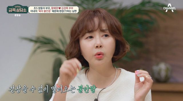 6일 밤 8시 10분 채널A 예능 프로그램 ‘오은영의 금쪽 상담소’에서는 황혜영-김경록 부부가 출연, ‘육아 불안증인 아내, 어떻게 해야 할까요’를 주제로 고민을 나눴다.