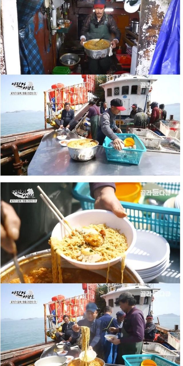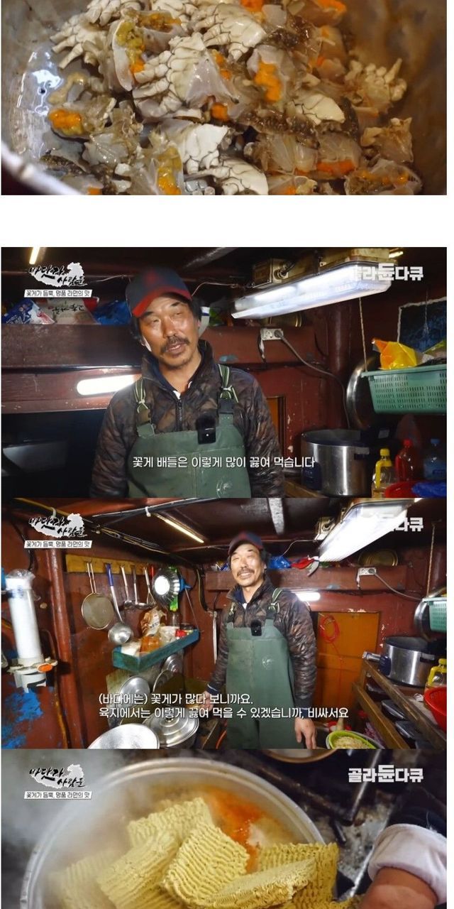 꽃게잡이 배에서 끓여 먹는 꽃게라면..