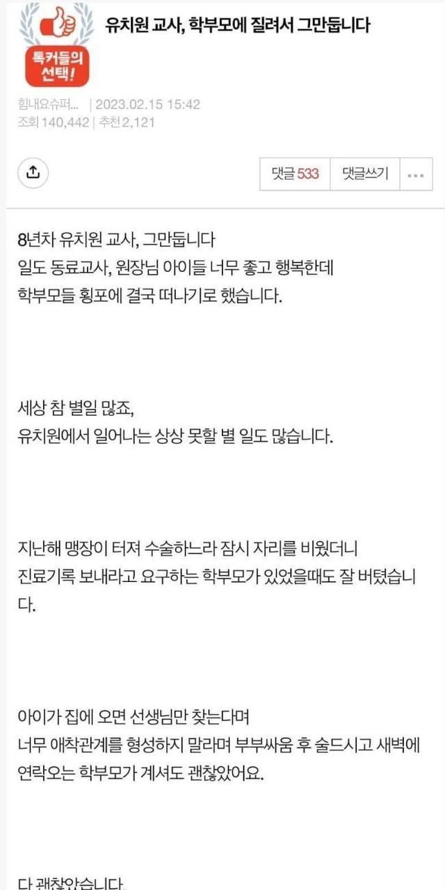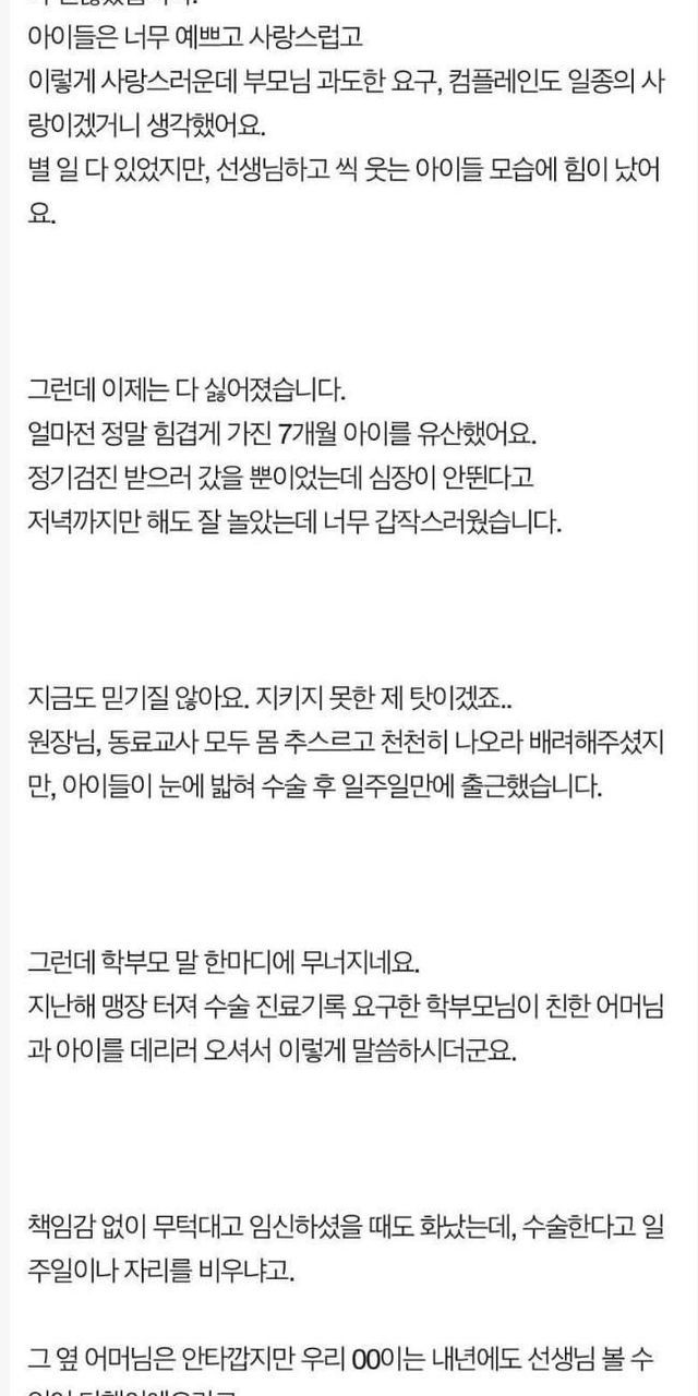 학무보한테 질려서 그만둔다는 유친원 교사 사연 …
