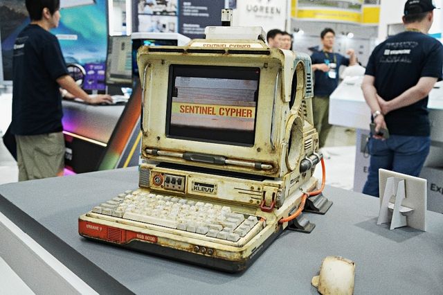 1970년대에 쓰이다 버려져 수십년간 어딘가 방치된 채 녹슬어가던 초기의 PC와 마우스를 발굴해낸 것 같은 느낌의 PC, 족히 50여년은 더 묵었음직한 낡은 오디오를 기반으로 튜닝한 PC 등. 튜닝 전문가의 작품들이지만, 우리가 반도체 산업을 시작하는 초장기에서 지금까지 단 한 번도 끊이지 않고 흘러온 역사의 이어가고 있다는 상징이기도 합니다. 부스의 전시가 마음에 드셨다니 저도 기쁘네요.