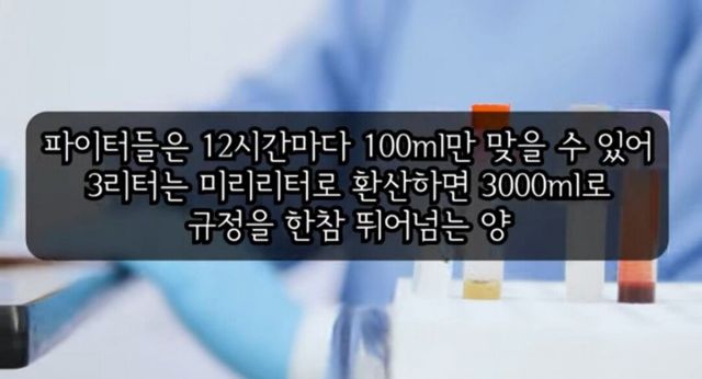 2~3리터를 맞는다는건 허용치를 한참 벗어난 수준이라고 트윗을 올림