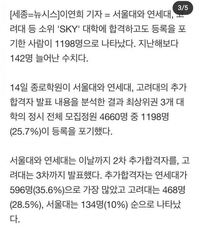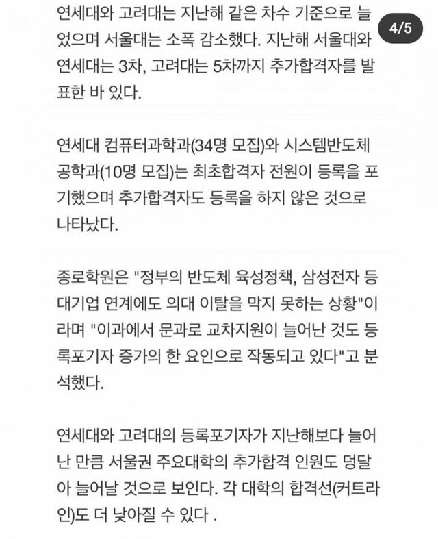 올해 연세대 컴공 / 반도체학과 최초합격자 전원 미등록함