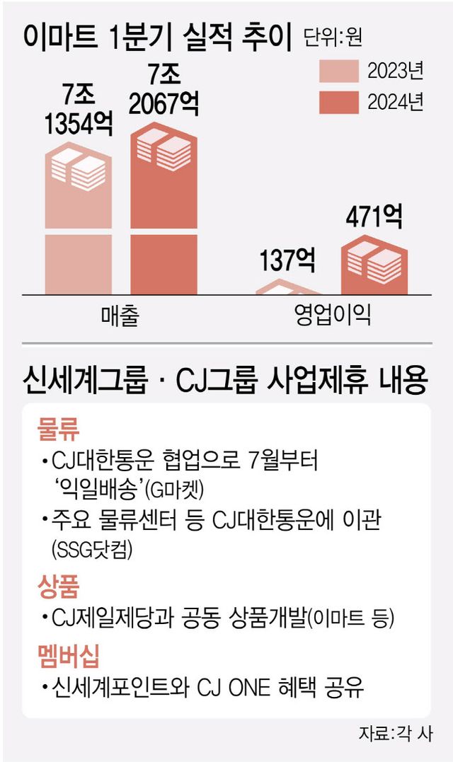 SSG닷컴과 G마켓의 올 1분기 실적만 봐도 손실 규모를 일부 줄이긴 했지만 여전히 139억원, 85억원의 적자를 기록 중이다. 근원적인 이커머스 경쟁력을 키워야 한다. 신세계와 이마트의 주가도 1년 전에 비하면 20~40% 이상 떨어진 상태다. CJ그룹과의 대규모 협력 소식에도 주가는 요지부동이다.