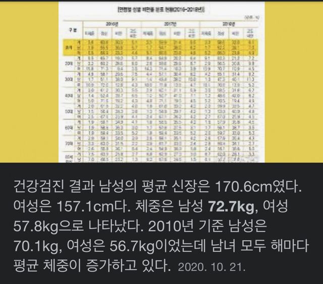 그렇다면 한국 성인 남성의 평균 체중은 몇일까