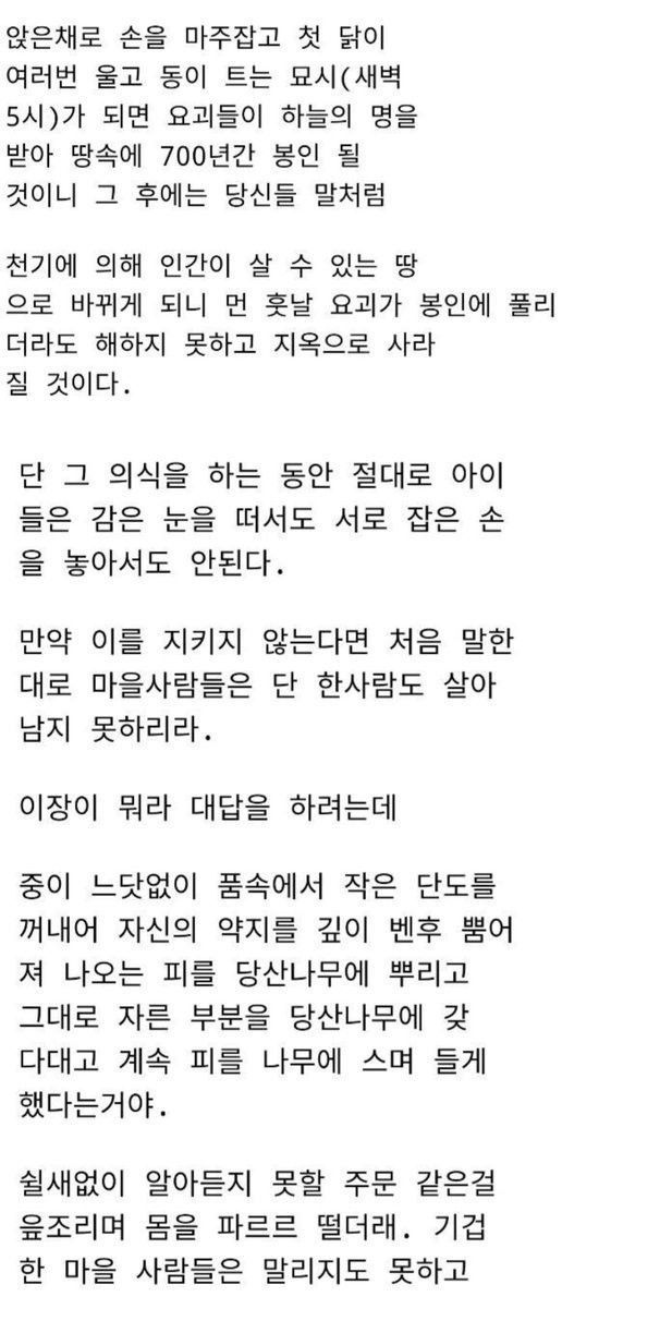 여담으로 마을사람들은 이미 홀려있었다거나 스님이 마을사람들을 제물로 바쳤다는 해석도 있음