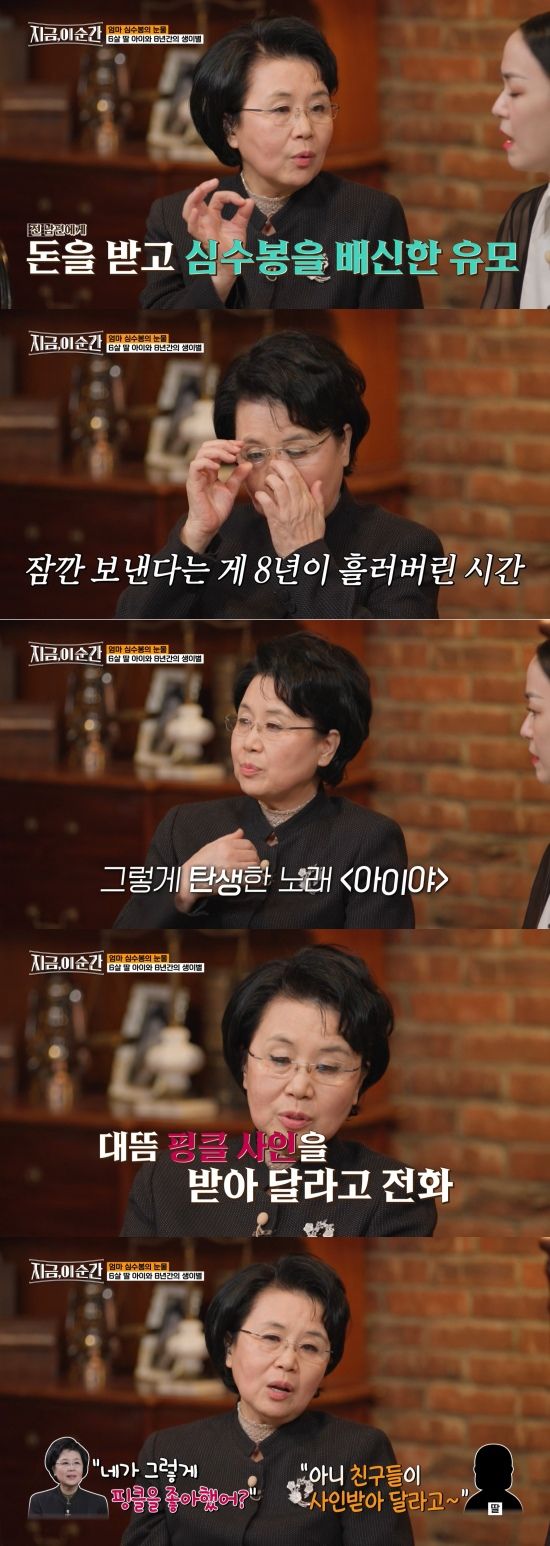 지난 6일 첫 방송된 tvN STORY '지금, 이 순간'에는 심수봉이 게스트로 출연했다.