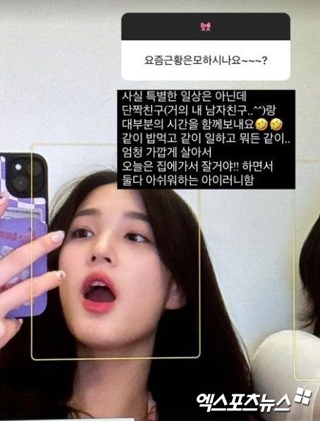 이어 "같이 밥먹고 같이 일하고 뭐든 같이.. 엄청 가깝게 살아서 오늘은 집에 가서 잘거야!! 하면서 둘다 아쉬워하는 아이러니함"이라고 덧붙였다. 이 '거의 내 남자친구'라는 발언으로 인해 오해가 생겼다. 율희가 열애 중이 아니냐는 것.