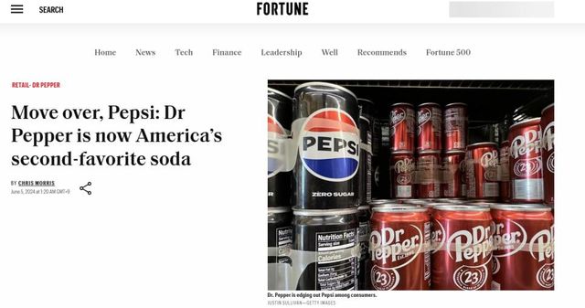닥터페퍼가 펩시 제치고 점유율 2등임1등은 코카콜라