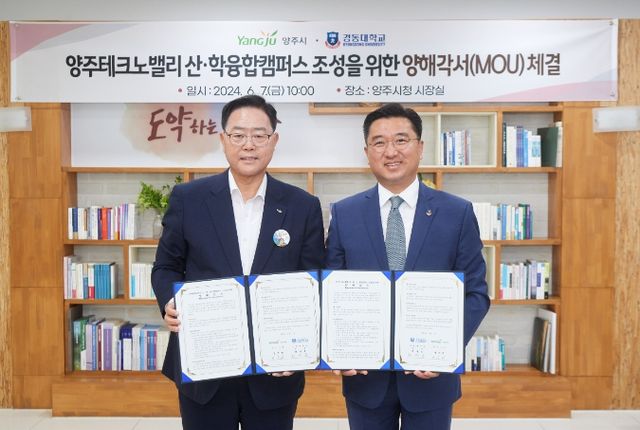 [파이낸셜경제=김영란 기자] 양주시는 7일 오전 시장실에서 경동대학교와 양주테크노밸리 활성화를 위한 ‘경동대학교 산학융합지구(산·학·연 융합 캠퍼스) 조성에 관한 양해각서(MOU)’를 체결했다고 밝혔다.