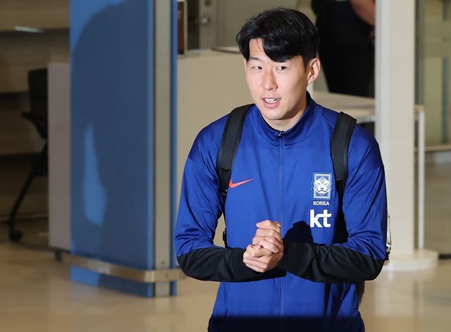대한민국 축구 국가대표팀 손흥민이 7일 오전 인천국제공항 제2터미널을 통해 귀국하며 인사하고 있다. 대표팀은 지난 6일(한국시간) 싱가포르 내셔널 스타디움에서 열린 싱가포르와의 2026 북중미 월드컵 아시아 2차 예선 C조 5차전에서 7-0 승리를 거뒀다. / 뉴스1