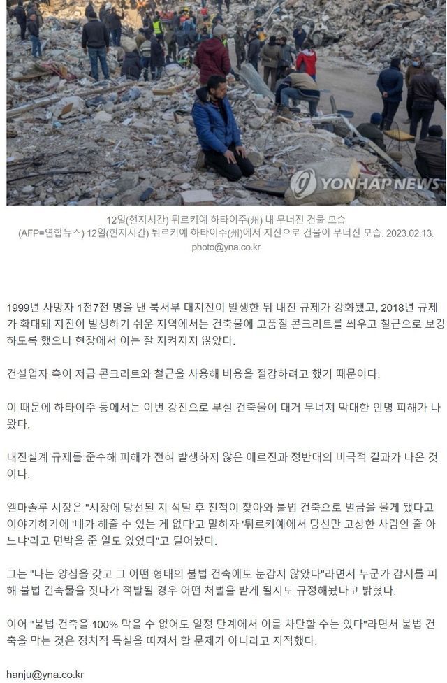 덕분에 이번 터키에서도 최악의 지진 피해가 났던 하타이 주에서사상자 0, 붕괴된 건물 0 기록했다고 함.