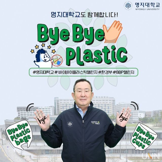 [한국대학신문 이정환 기자] 명지대학교 유병진 총장이 7일 범국민 플라스틱 사용 줄이기 캠페인 ‘바이바이 플라스틱(Bye Bye Plastic) 챌린지’에 참여했다. ‘바이바이 플라스틱 챌린지(Bye Bye Plastic)’는 실생활 속 플라스틱 사용을 줄이는 착한 소비 확산을 위해 환경부가 지난해부터 시행 중인 릴레이 캠페인이다.