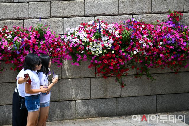 7일 서울 종로구 청계천에 조성된 청계천 환영 꽃길에서 시민들이 기념사진을 찍고 있다. 서울시는 서울월드컵경기장·서울어린이대공원·청계천 등 서울 곳곳에 감성을 채울 수 있는 매력 경관 조성과 함께 음악회, 체험 프로그램 등 다채로운 행사를 마련했다고 이날 밝혔다. /정재훈 기자